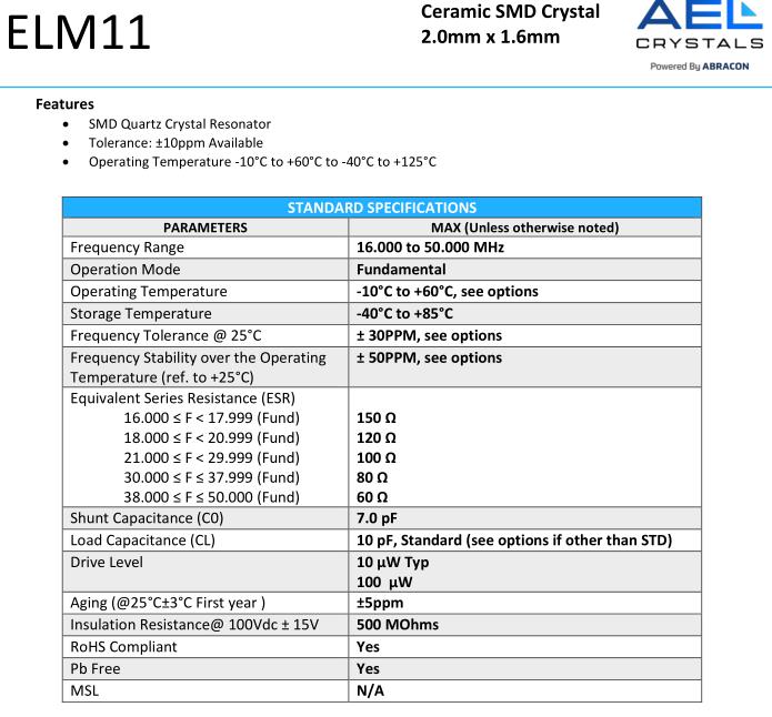 AELCrystal所生產的產品均獲得ISO國際質量管理認可. 各大知名平臺引進AEL晶振,為汽車產品,安防產品,移動通信等領域提供更多優質晶振,專業生產有源晶振,SMD晶振,32.768KHZ晶振等產品.艾爾晶振,ELM11晶振,ELM11-16.000MHz-D7X-T晶振.