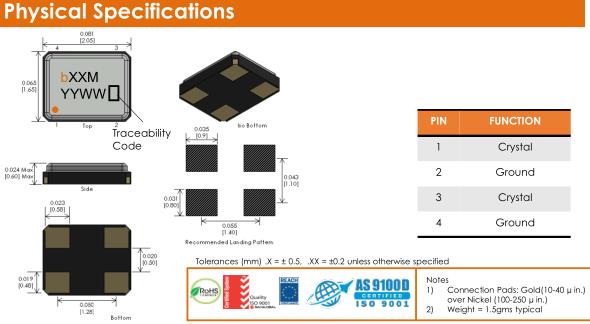| Drive Level | Typical | 10 Typ, 100 Max | μW |