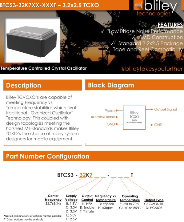Bliley晶振,BTCS3晶振,BTCS3-32K7DN-HBDT晶振
