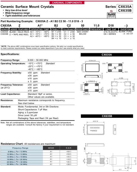 Cardinal晶振,CX635A晶振,CX635B晶振,CX635AZ-A1B2C250-11.0D18-3晶振