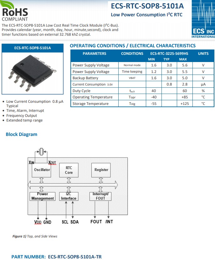 ECS-RTC-SOP8-5101A非常適合電池供電的便攜式遠(yuǎn)程電子設(shè)備