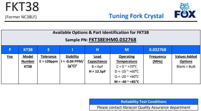 | FSXLF327 | Fox Crystal | FSXLF | kHz Crystal (Tuning Fork) | 32.768kHz |