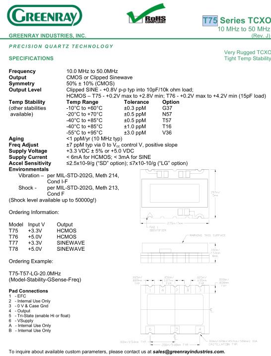 Greenray晶振,T75晶振,T75-T57-LG-20.0MHz晶振