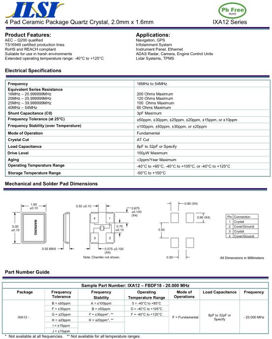 ILSI晶振,IXA12_A晶振,IXA12–FBDF18-20.000MHz晶振