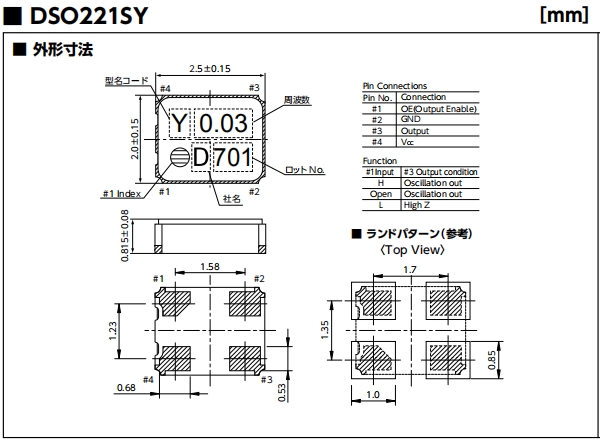 | 規格參數 | DSO221SY晶振 |