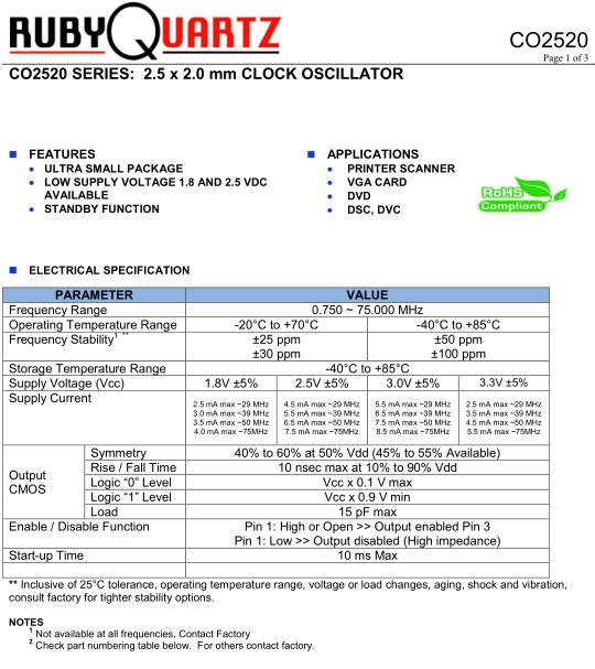 2.5 mA max ~29 MHz 3.0 mA max ~39 MHz 3.5 mA max ~50 MHz 4.0 mA max ~75MHz |