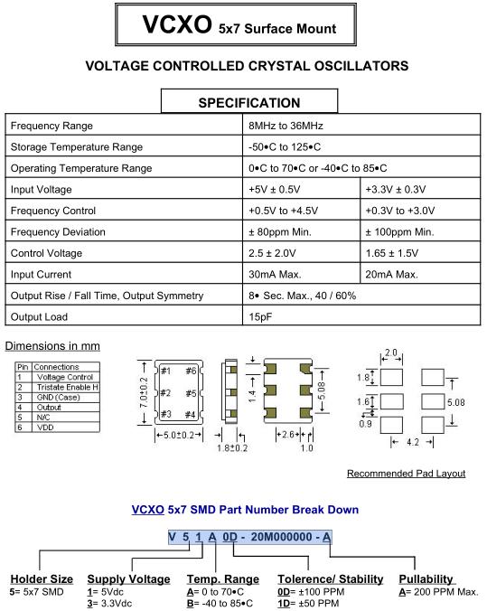 STD晶振,O-7晶振,V51A0D-20M000000-A晶振,VCXO壓控晶振,壓控石英晶體振蕩器基本解決方案,PECL輸出,輸出頻率60MHz到200MHz之間,出色的低相位噪聲和抖動,三態(tài)功能,應用:SDH/SONET,以太網(wǎng),基站,筆記本晶振應用,符合RoHS/無鉛.