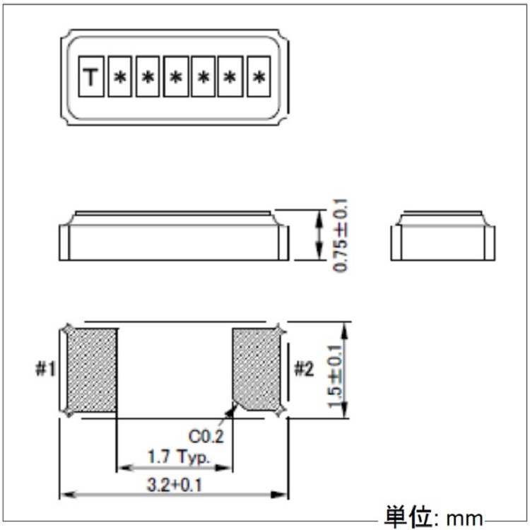 20ppm,Q-SC32S03220C5AAE,SC-32S,0.032768,3215mm,可穿戴設備 尺寸圖Q-SC32S03220C5AAE晶振 特點: