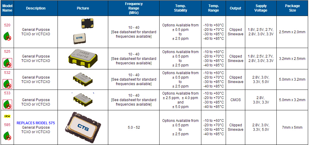 進口CTS晶振,532石英晶體,5032M溫補振蕩器