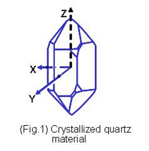 石英是由硅原子和氧原子組合而成的二氧化硅(Silicon Dioxide, SiO2), 以32點群的六方晶系形成的單結晶結構﹝圖一﹞.單結晶的石英晶體結構具有壓電效應特性, 當施加壓力在晶體某些方向時, 垂直施力的方向就會產生電氣電位. 相對的當以一個電場施加在石英晶體某些軸向時, 在另一些方向就會產生變形或振動現象. 掌握單結晶石英材料的這種壓電效應, 利用其發(fā)生共振頻率的特性, 發(fā)揮其精確程度作為各類型頻率信號的參考基準, 就是水晶震蕩器的設計與應用. 因為石英晶體具有很高的材料Q值,所以絕大部份的頻率控制組件,如共振子及振蕩器,都以石英材料為基礎. 以石英為基礎的頻率控制組件可以依其壓電振動的屬性, 可以分為體波(bulk wave)振動組件及表面聲波(surface acoustic wave)振動組件. 體波振動組件如石英晶體共振子, 石英晶體濾波器及石英晶體振蕩器, 表面波振動組件如表面波濾波器及表面波共振子. 當石英晶體以特定的切割方式, 以機械加工方式予以表面研磨, 完成特定的外型尺寸就是通稱的石英芯片(quartz wafer 或 quartz blank ). 將這個石英芯片放置在真空還境中, 于表面鍍上電極后,再以導電材料固定在金屬或是陶瓷基座上, 并加以封裝, 就成為一般所謂的石英晶體共振子( quartz crystal resonator ). 利用石英共振子在共振時的低阻抗特性及波的重迭特性, 用鄰近的雙電極, 可以做出石英晶體濾波器. 將石英振蕩子加上不同的電子振蕩線路, 可以做成不同特性的石英振蕩器. 例如: 石英頻率振蕩器(CXO), 電壓控制石英晶體振蕩器(Voltage Controlled Crystal Oscillator, VCXO), 溫度補償石英晶體振蕩器(Temperature Compensated Crystal Oscillator, TCXO), 恒溫槽控制石英晶體振蕩器(Oven Controlled Crystal Oscillator, OCXO)…等. 相對于體波諧振的是表面聲波的諧振. 將石英晶體表面鍍以叉狀電極(inter-digital-transducer, IDT)方式所產生的表面振蕩波, 可以制造出短波長(高頻率)諧振的表面聲波共振子(SAW Resonator)或表面聲波濾波器(SAW Filter).