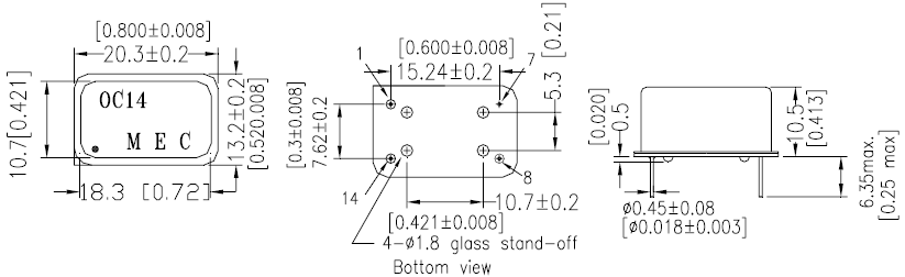 | 石英晶振規格 | 單位 | OC14E5A, OC14E5GA 20.3-13.2mm 晶振說明 | 進口振蕩器基本條件 |